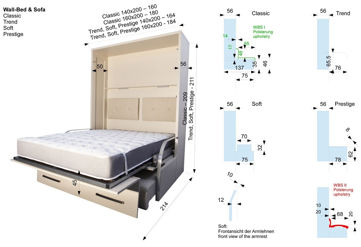 Produktinformationen "Schrankbett Wandbett mit Sofa WBS 1 Soft Office"