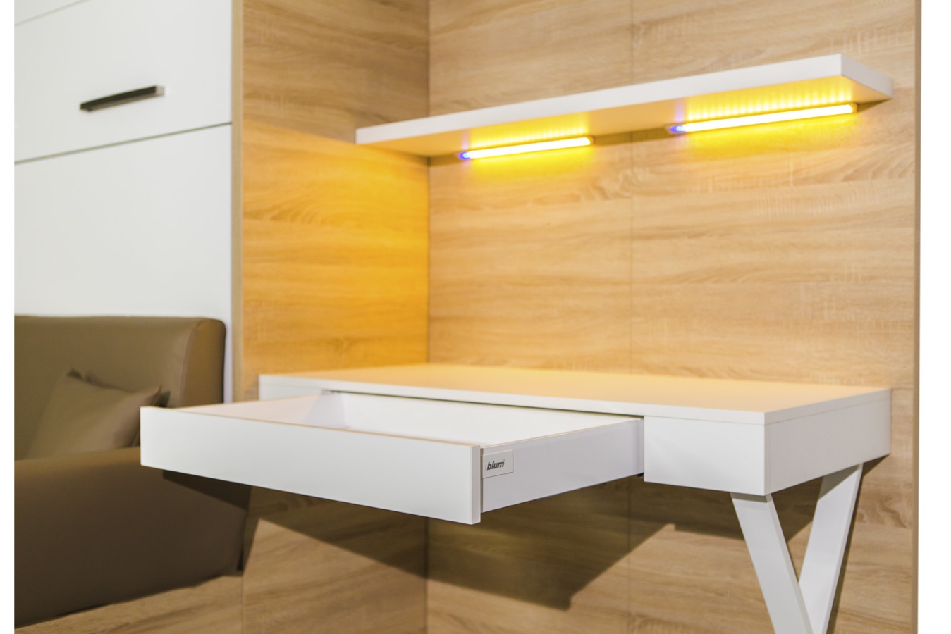 - Vertikales Wandbett mit Sofa WBS 1 Soft Office mit einem einmaligen Patent in Deutschland.